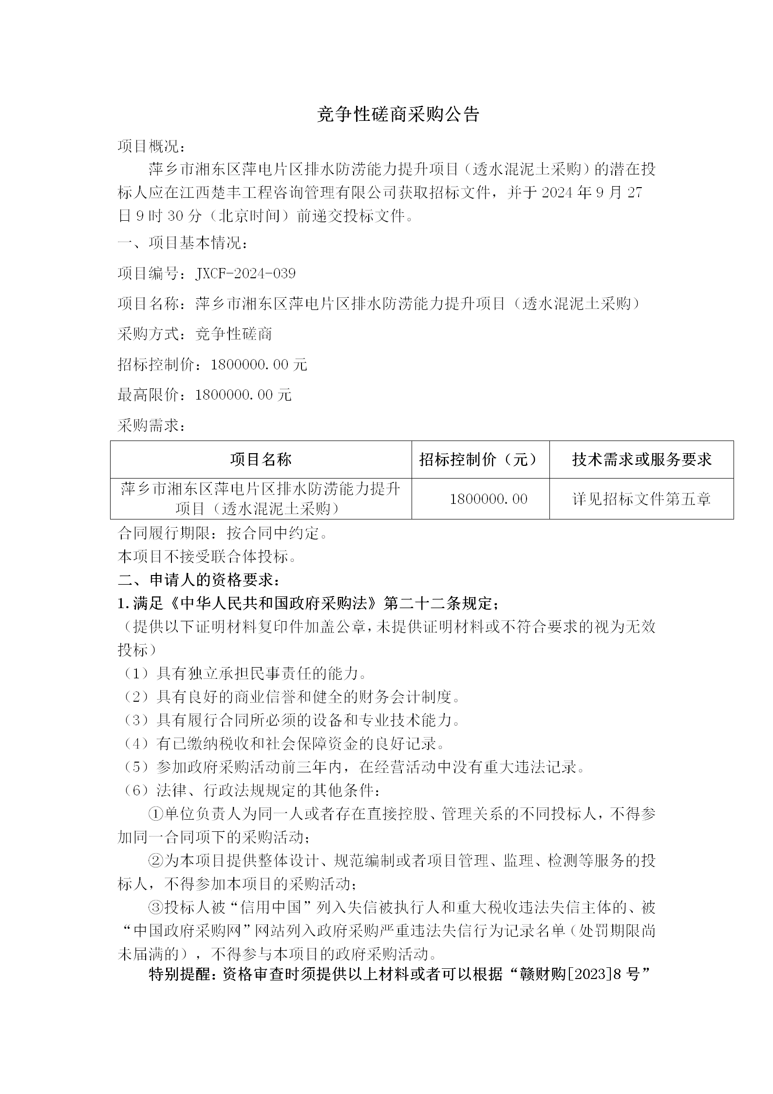 江西嘉祥水利工程有限公司現(xiàn)對“萍鄉(xiāng)市采煤沉陷區(qū)湘東區(qū)冬瓜槽區(qū)避險搬遷項目進行公開詢價?,F(xiàn)歡迎符合資格條件的供應(yīng)商前來響應(yīng)。
