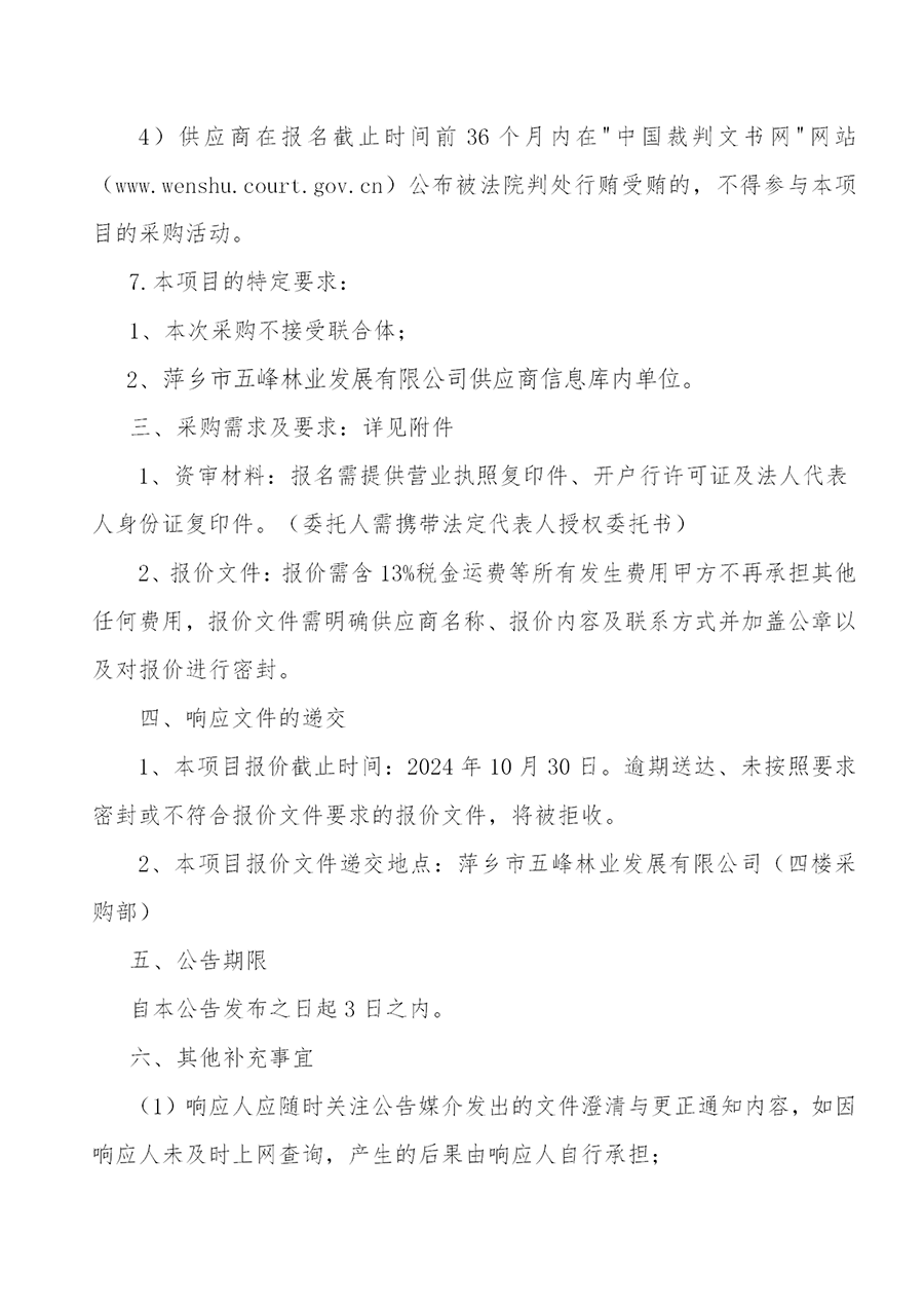 萍鄉(xiāng)市五峰林業(yè)發(fā)展有限公司2025年度供應(yīng)商招募啟事
