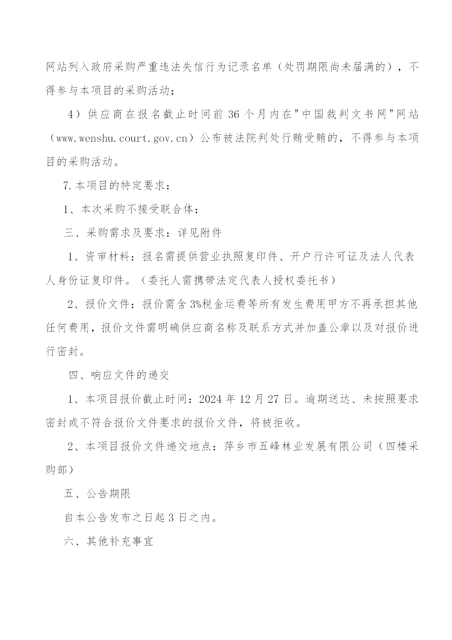 萍鄉(xiāng)市五峰林業(yè)發(fā)展有限公司2025年度供應(yīng)商招募啟事