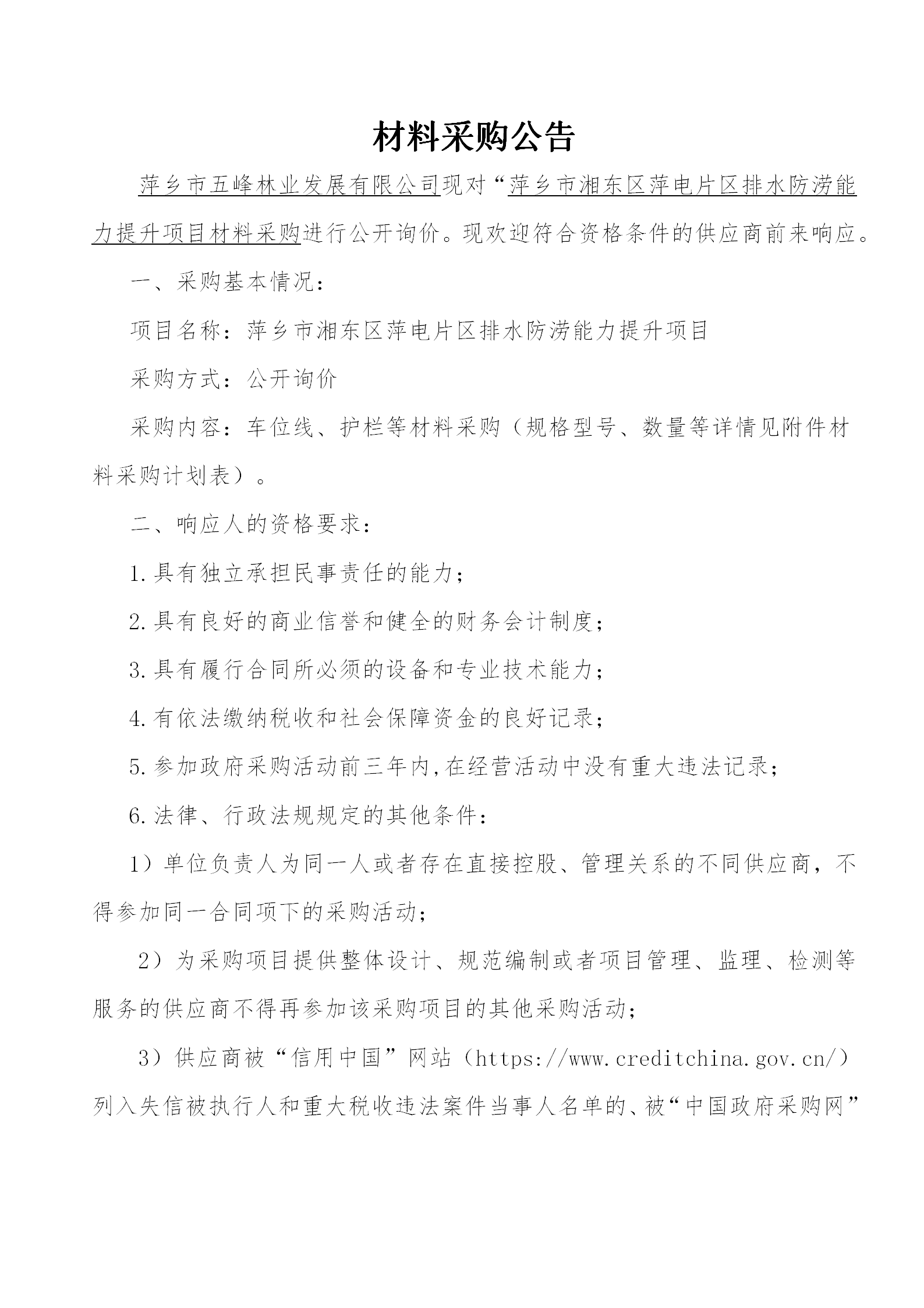 材料采購(gòu)公告
